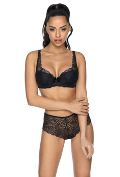 Komplet biustonosz półusztywniany czarny Denise M-0201/21 i stringi z wysokim stanem S-0201/4/1