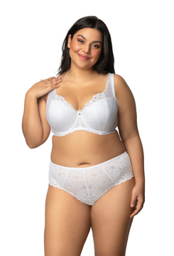 Komplet biustonosz push-up biały Lindsay M-0203/11 + stringi S-0203/4/1 + pas do pończoch P-0203/3