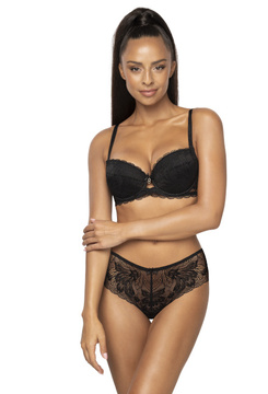 Komplet biustonosz push-up czarny Lindsay M-0203/11 i brazyliany F-0203/54 + pas do pończoch P-0203/3