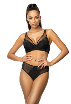 Komplet biustonosz push-up beżowo-czarny Lindsay M-0203/11/2 i figi otwarte F-0203/55